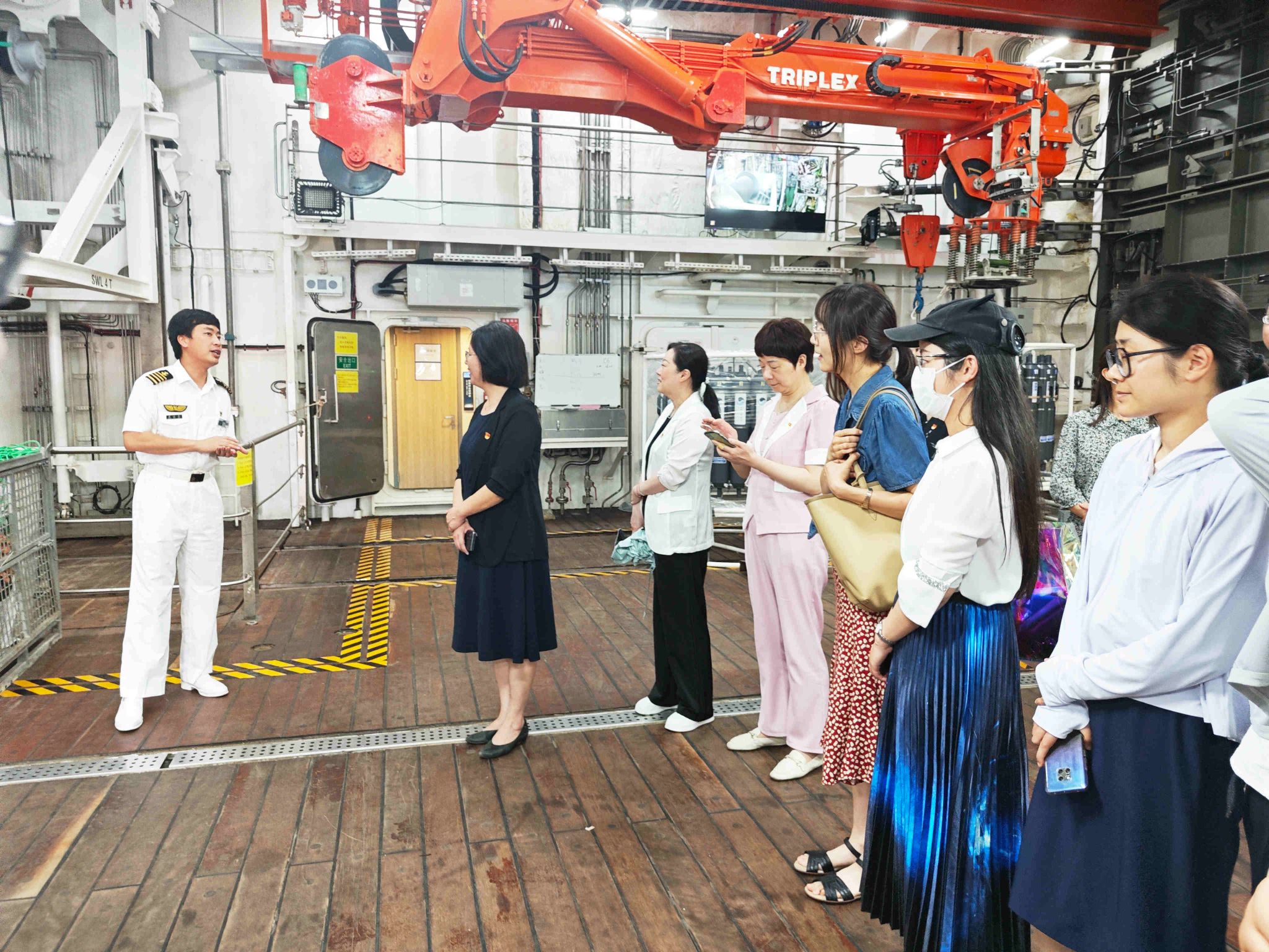 在“七一”党的生日来临之际,6月29日下午,2138CC太阳集团党委书记吕康娟,学院党委副书记、副院长卫静芬,副院长方慧、副院长(挂职)孙燕红率学院基层党务工作者及民主党派代表前往中国极地研究中心参观调研,来自嘉定校区保卫处、校医院等校区兄弟部门的部分党员同志也随行参加了本次活动。中国极地研究中心破冰船研究院院长黄嵘亲自接待了吕书记一行。 在黄嵘院长的引导下,吕康娟书记一行登上停泊在中国极地研究中心港口岸边的"雪龙2"号极地考察船,观看了讲述2022年最新一次该船南极科考进程和收获的专题纪录片,并依次参观了船上的科学实验室、会议室、餐厅、健身房、放映厅、科考专家寝室、直升机停机坪,还进入位于全船最高处九层甲板的驾驶控制室,现场聆听了关于这艘我国目前最先进的极地科考船各方面情况的详细讲解。 "雪龙2"号船是具备国际先进水平的极地科学考察破冰船,设计船长122.5米,船宽22.3米,船深11.8米,吃水7.85米,吃水排水量约13990吨,装载能力约4500吨,航速12节~15节,可实现极区原地360度自由转动,并可突破极区20米当年冰冰脊,船舶机动能力大幅提升,满足无限航区要求、具备全球航行能力,能够在极区大洋安全航行。 习近平总书记指示:“南极科学考察意义重大,是造福人类的崇高事业,中方愿同国际社会一道,更好认识南极、保护南极、利用南极”。通过本次登船实地参观,大家对我国极地科考工作的“南极精神”有了更加直观和立体的感受,大家决心从“南极精神”中汲取前进动力,以更加昂扬振奋的精神风貌,投入到中外合作办学高质量发展和一流商学院建设的工作中去! |