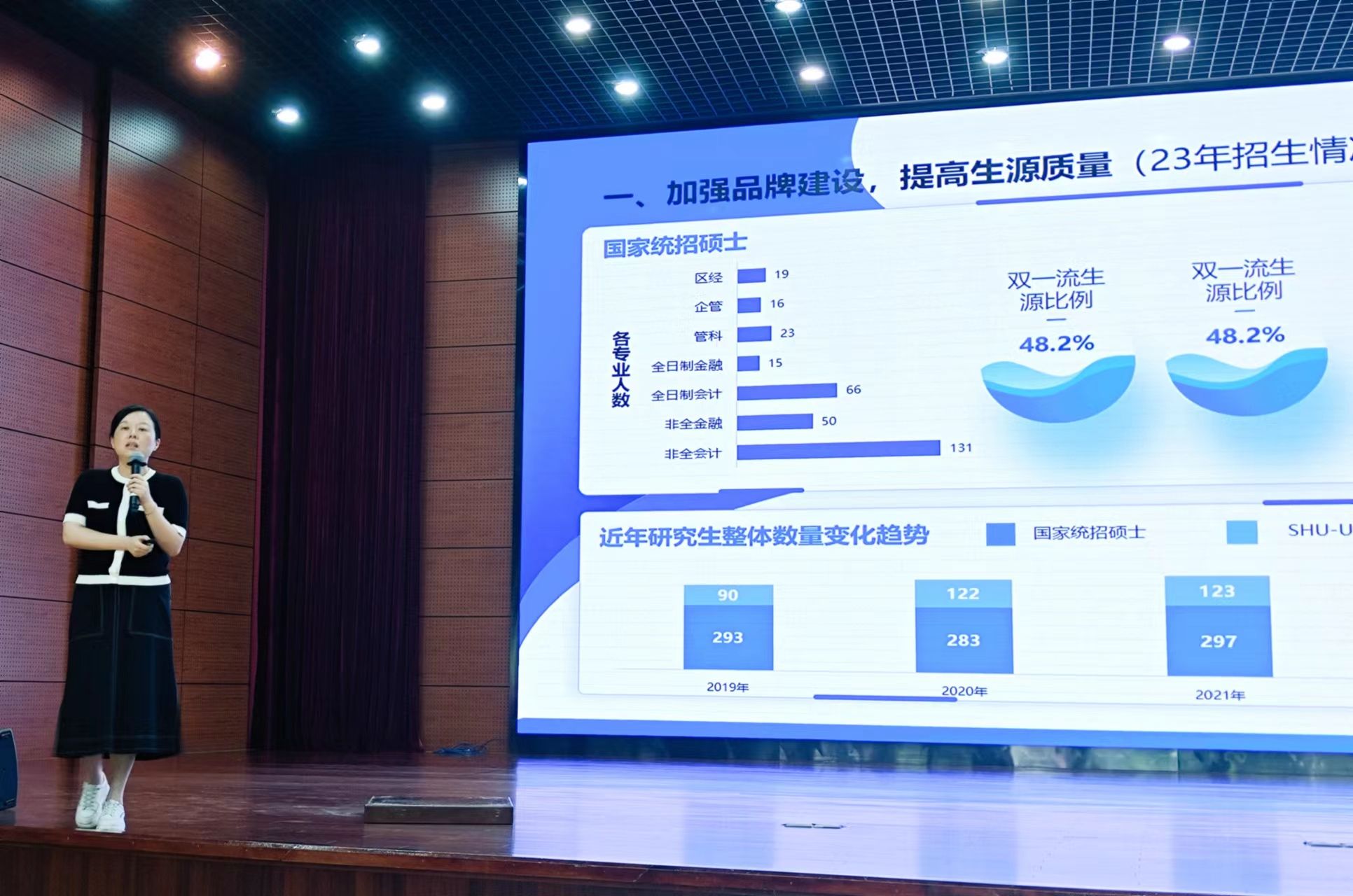 暑意初消,金秋将至。8月25日,新学年首日,2138CC太阳集团2023-2024学年第一次教职工大会在嘉定校区行健文体中心顺利举行。学院全体教职工济济一堂,学院党委书记吕康娟、院长卞亦文、副院长胡笑寒,党委副书记、副院长卫静芬,副院长方慧、副院长(挂职)孙燕红出席会议,会议由卞亦文院长主持。 卞亦文院长介绍了人员入职、岗位变动、人员离职等人事信息,上学年学院考核优秀教职工名单,学院今年新生招生情况,以及学院上半年科研工作成果。他从人才培养、队伍建设、国际合作、科学研究、社会服务、基础设施建设等六个方面布置了学院下半年主要工作任务;他还结合主题教育调研情况,从课程强基础、育人注重人文关怀、教职工发展定位、绩效考核多元化、职业培训提升能力、激励机制设计等多个方面阐述了对学院未来发展的总体构想。 胡笑寒副院长从上半年基本教学情况、毕业论文情况、专业建设、课程建设、学科竞赛、学生实习实践、教发中心工作、本科教育教学审核评估等多个方面全面总结了上半年学院教学管理工作,介绍了下半年教学工作的主要任务。她从深化与UTS的合作、开拓一流国际合作项目、海外非学历项目,留学生招生、教学与培养,学生国际胜任力培养、海外教师行政服务等方面总结了学院上半年国际化工作,介绍了国际部下半年的主要工作安排。 卫静芬副书记通报了上学年学院各类学生的毕业情况,截止8月24日,学院毕业去向落实率98.29%、签约率89.56%,均高于2022年同期水平。她汇报了今年学院各类学生的招生情况和生源情况。她介绍了第十八届“挑战杯”、第九届“互联网+”大赛、上大本科生论坛、首届文荟本科生学术训练营、文荟书院“知行书荟”读书会等新学年主要推进的学生工作。她还介绍了主题教育解决问题和整治问题的情况。 方慧副院长从品牌建设、专硕的实践应用能力培养、课程质量持续提升等方面总结了上半年学院研究生工作的推进情况;从拓展捐赠资源、优化校友服务、加强校企联系、打造企业培训品牌等方面总结了外联工作的努力方向;从资金绩效评价系统开发,深入梳理内控风险点,进一步完善内控制度等角度介绍了学院财务工作的近期进展情况。她还汇报了在主题教育中运用党的创新理论研究新情况、解决新问题取得的初步成果。 吕康娟书记结合习近平总书记历年来对教育工作的重要论述,带领大家重温“新时代高校教师职业行为十项准则”,从学院育人工作的实际出发,对全体教职工进行了师德师风教育。她要求全体教职工认清形势,以奋发有为的姿态和实际行动积极应对百年未有之大变局的不确定性,结合学院建院三十周年大庆和AACSB再次认证,认真思考如何苦练内功,使自己、使学院拥有立于不败之地的不可替代性,在学院追求中外合作办学高质量发展的道路上再立新功!她还对主题教育调研中发现和梳理的问题进行了重点剖析和反馈。 会后,学院各系、各部门按照学院统一部署分别召开部门会议,以学院下半年工作的总体规划为引导,结合各系部实际情况,进行了下半年工作集体讨论。路虽远,行则必至;事虽难,做则必成,全院同心同德、团结一致,决心在新的学年把学院工作推向更高的层次和水平! |