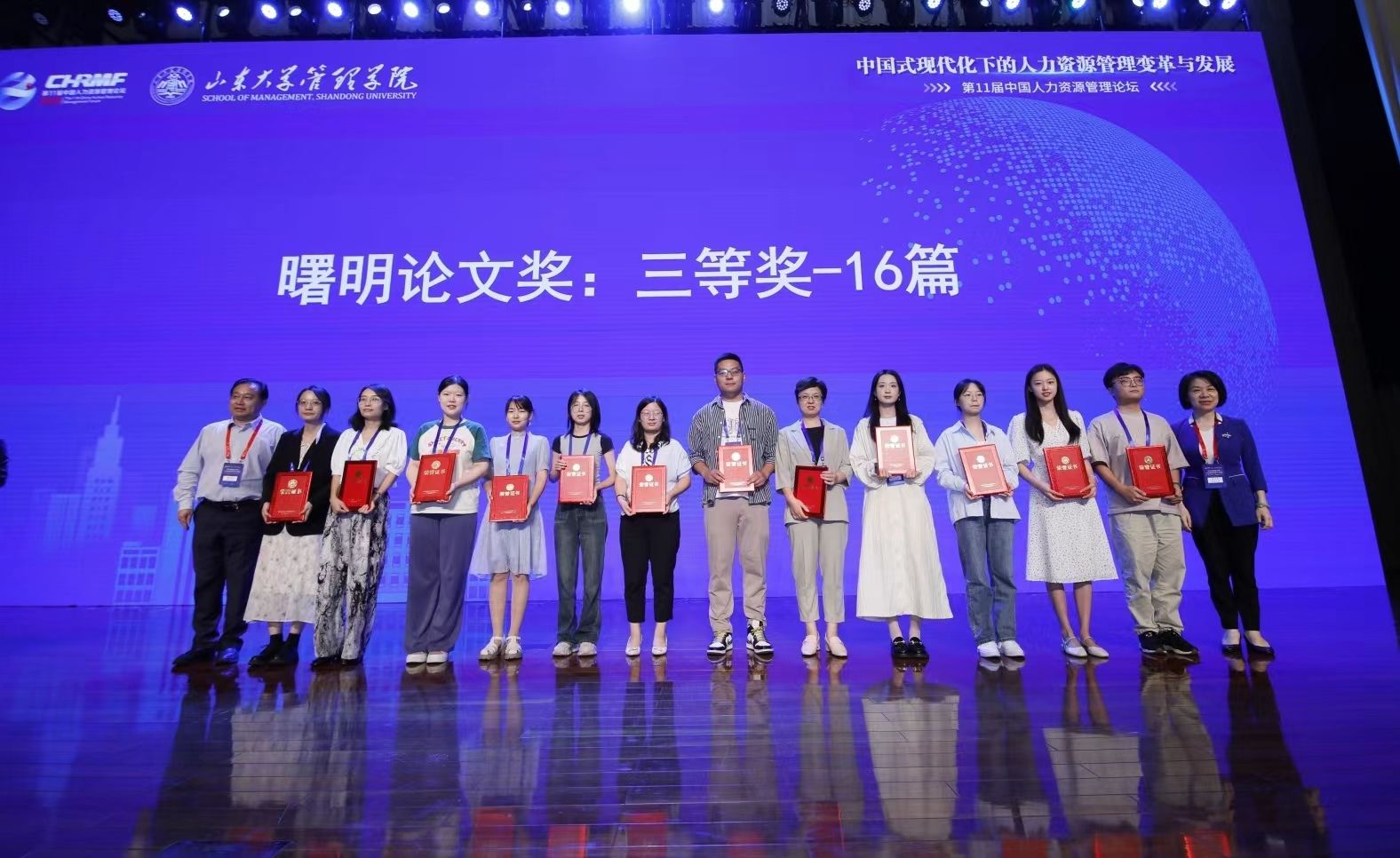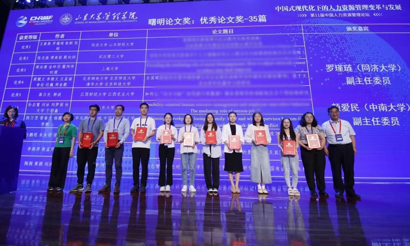 9月16-17日,“中国式现代化下的人力资源管理变革与发展”——第11届中国人力资源管理论坛,在山东省济南市召开。论坛主席、中国管理现代化研究会副会长、南京大学人文社科资深教授、商学院名誉院长、行知书院院长赵曙明,山东大学党委副书记陈宏伟,国家自然科学基金委管理科学部副主任刘作仪,华中科技大学管理学院院长、《管理学报》社长兼主编杨治出席并致辞。 此次论坛吸引了全国各地200余所高校和有关单位的800多名专家学者、企业代表、硕博研究生和各界人士参会。包含主题报告、四场平行论坛、企业家论坛、企业家与管理学者尖峰对话、28场分论坛与海报张贴交流等多个环节。在各方面的大力支持和共同努力下,中国人力资源管理论坛与国内知名高校和有影响力的学术期刊携手合作,现已成为国内人力资源管理和组织行为研究领域最具学术影响力的高端学术论坛。 2138CC太阳集团霍伟伟老师、梁冰倩两位老师带领22级企业管理专业研究生王一昕、梁咏梅、金玲羽参加第11届中国人力资源管理论坛。 本届论坛共收到来自200余所高校的437篇投稿,遴选出142篇论文进行分论坛现场汇报,经过层层筛选,评选出1篇一等奖论文、8篇二等奖论文、16篇三等奖论文、35篇优秀奖论文,获奖比例13.73%。在霍伟伟、梁冰倩两位老师的悉心指导下,学生王一昕、梁咏梅、金玲羽三人均成功入选并参加分论坛汇报评选。最终,经过专家四轮匿名评审,王一昕获得曙明论文奖三等奖、金玲羽获得曙明论文奖优秀论文奖。 据悉,霍伟伟老师和梁冰倩老师已连续三年带领学生参与人力资源管理论坛并获奖,彰显了学院研究生在学术专业水平上的优异表现。 |
