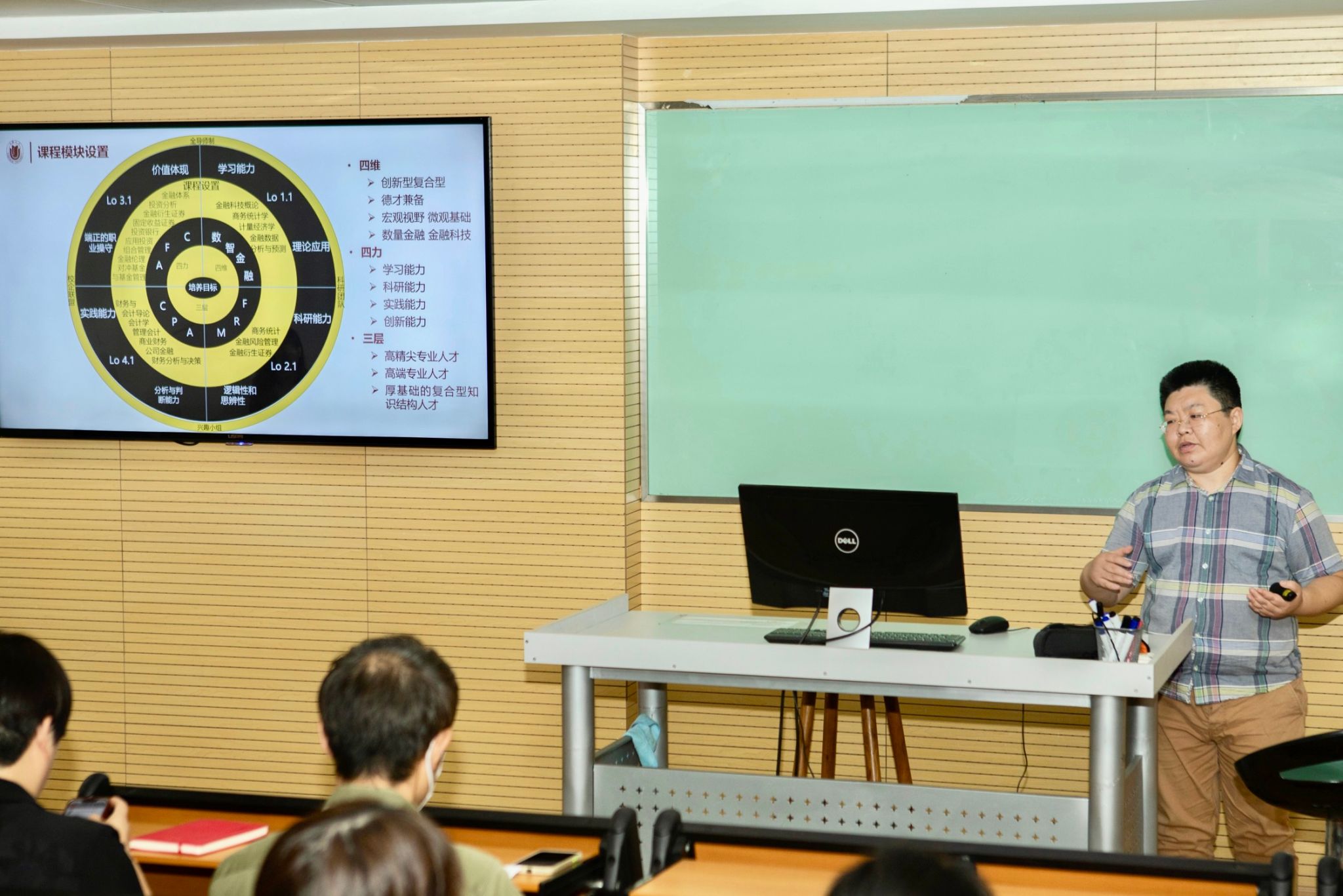 孙覃玥围绕培养目标与特色、人才培养指导思想、目标实施路径与方案、师资团队及教学方法五个方面对金融专业体系展开详细介绍。他强调本专业具有国际化、紧跟数量金融与金融科技发展前沿、与行业发展要求相接轨等三大特色,目标是培养具有宏观视野和微观基础的高端专业人才,希望同学们能在跨学科知识结构和应用能力、钻研精神和研究能力、品德和专业知识等方面全面发展。他还现场向同学们展示了金融专业的课程模块设置,应对同学们对课程的疑问。
