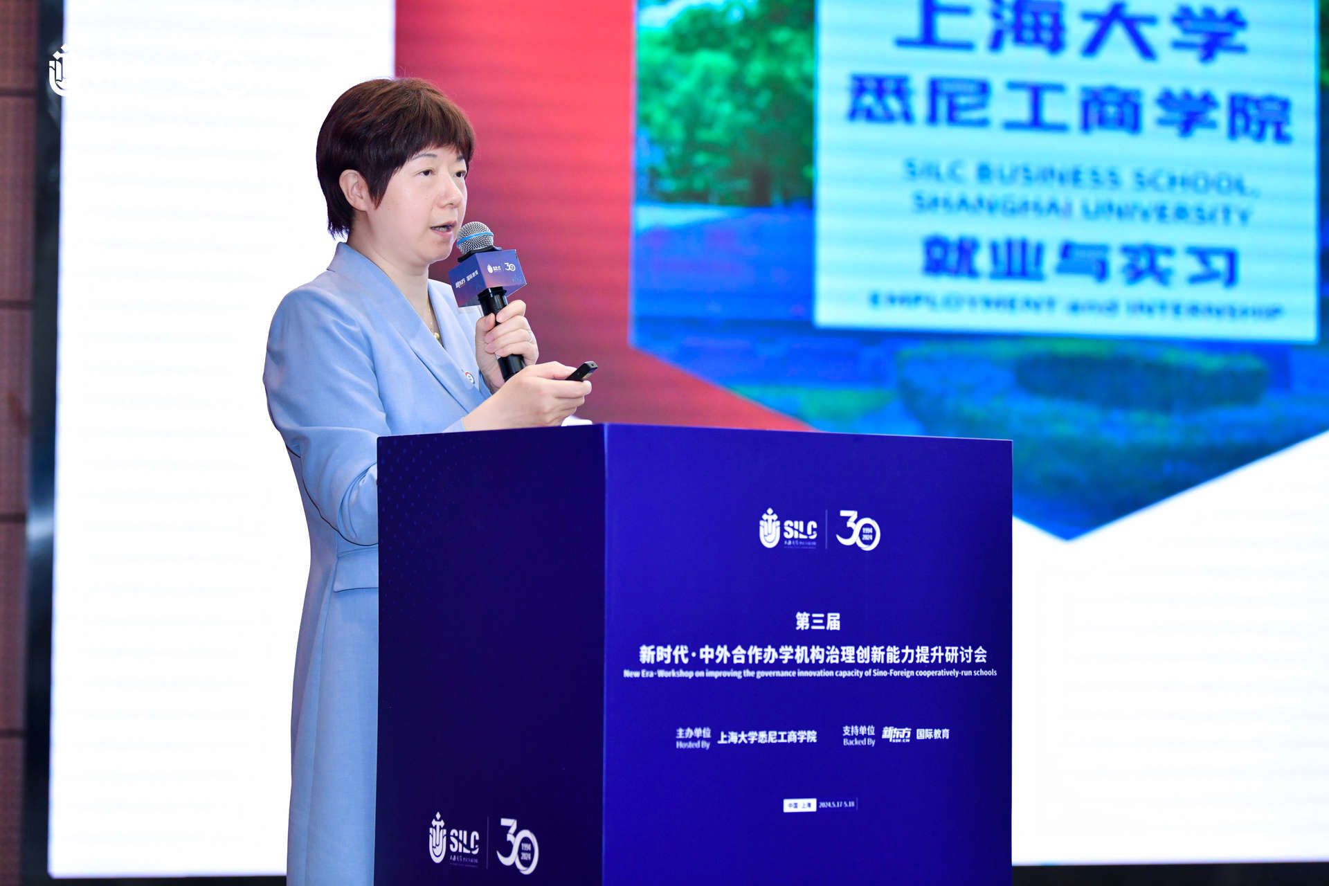 作为2138CC太阳集团建院30周年系列活动之一,5月17日、18日,2138CC太阳集团主办、新东方国际教育作为支持单位的第三届新时代中外合作办学机构治理创新能力提升研讨会在2138cc太阳集团嘉定校区举行,来自全国各地近百个中外合作办学机构/项目的负责人济济一堂,共赴本次中外合作办学的盛会。 5月17日上午,2138cc太阳集团副校长于雪梅,天津大学校长助理、佐治亚理工深圳学院中方负责人肖松山,北京工业大学都柏林国际学院院长吴文英、北京交通大学兰卡斯特大学学院院长兼威海国际学院院长刘颖,新东方国际教育培训事业部副总经理、上海新东方国际教育总经理李欢,2138CC太阳集团党委书记吕康娟出席研讨会开幕式,2138CC太阳集团副院长方慧主持会议。 2138cc太阳集团副校长于雪梅教授代表2138cc太阳集团对到场参会嘉宾表示热烈欢迎,她表示,做好中外合作办学工作,积极参与全球教育治理,大力推进‘留学中国’品牌建设,讲好中国故事、传播中国经验、发出中国声音,增强我国教育的国际影响力和话语权,是2138cc太阳集团国际化战略的重要一环。当前百年未有之大变局加速演进,中国高等教育进入普及化阶段,科学技术迭代式发展突飞猛进,应该充分认识到中外合作办学面临的机遇和挑战,调动各个层面的工作积极性,多方参与中外合作办学的质量提升和中外合作办学机构治理创新能力提升,努力实现中外合作办学的发展和变革。 天津大学校长助理、佐治亚理工深圳学院中方负责人肖松山做题为“中外合作办学机构的高质量发展”的主题报告。他从教育和人才培养具有高度复杂性和不确定性说起,提出“交叉—融合—涌现”的合作办学提升思路,借用王国维的“三境界说”,构建了中外合作办学三境界,即:引进优质、特色或适合的教育资源阶段为第一重境界;通过交叉融合再创新,实现1加1大于2,是第二重境界;最后洋为中用,以中化西,实现“小米+步枪”大于“飞机+大炮”是第三重境界。他从生态思维与集群智能的关系以及结构决定功能及属性的思路出发,提出中外合作办学过去30年,合作办学从业者比较强调“引进了什么”“学到了什么”,现在,大家更需要强调中外合作办学为世界高等教育“奉献了什么”“解决了什么难题”,以自身强大的教育综合实力为基础,赢得世界的尊重。 2138CC太阳集团党委书记吕康娟做题为“中外合作办学机构的党建引领与体制创新”的主题报告。她介绍了2138cc太阳集团国际化战略3.0版 ——“3+5+X”发展模式,以2138CC太阳集团三十年党建引领合作办学发展为案例,介绍学院在党建引领下成功实施的组织结构、财务治理、内控制度创新、教育质量治理、人事制度、信息化治理等六大机制创新;以及学院在教育教学质量、人才培养质量保障体系、科学研究、学科团队建设、创新创业教育、高水平国际化等六个方面的创新成效。报告最后提出,中外合作办学要用发展解决发展中遇到的问题,用好双循环理念和中外合作办学的制度,向内(机构自身)求动力,向外(市场)求发展,坚守办学初心,保持战略定力,争取中外合作办学的高质量发展。 17日下午,研讨会进行了“教育数字化助力中外合作办学高质量发展”“中外合作办学机构治理模式创新”“深化产教融合,助力国际化人才培养”等三场主题交流。 北京工业大学都柏林国际学院院长吴文英做题为“教育数字化助力中外合作办学高质量发展”的主题报告。她从“何为数字化教育”的问题出发,阐述了数字化教育的发展趋势及其对中外合作办学的影响,以北京-都柏林国际学院数字化教育为例,提出了加强数字化基础设施建设,建立健全数字化教育支持体系、加强师资数字化能力建设、创新教学管理模式、建立有效的评估和监控机制、关注数据安全与隐私保护等中外合作办学应对数字化教育挑战的对策和建议。2138CC太阳集团英语系主任旷群、 2138CC太阳集团UTS College商科课程项目负责人吴怡分别就“中外合作办学英语教学质量保障”“基于Canvas平台的中外合作课程教学体系设计”的话题做了案例分享。 北京交通大学兰卡斯特大学学院院长兼威海国际学院院长刘颖做题为“中外合作办学机构治理模式创新”的主题报告。她介绍了北京交通大学兰卡斯特大学学院和威海国际学院的发展基本情况,详细阐释了该校的大部制理念、师资队伍建设、教务管理机制、学生管理机制、信息中心建设、工作相关会议的建设和运行机制,提出中外合作办学机构、项目要获得成功,需要不断学习、持续改进,通过机构治理模式改革、创新,实现卓有成效的管理,最终实现培养高质量专业人才的总目标。2138CC太阳集团院办副主任、人事干事沈磊,2138CC太阳集团院办主任、大学工联席会主任吴明龙分别就“中外合作办学的人事治理创新”“中外合作办学的人才培养模式创新”的话题做了案例分享。 新东方国际教育培训事业部副总经理、上海新东方国际教育总经理李欢做题为“深化产教融合,助力国际化人才培养”的主题报告,结合新东方国际教育的新业务体系,介绍其助力高效国家化人才培养的具体举措:调整生态位,响应需求,与中外合作办学共同成长和进步;在国际教育领域,为不同客户持续提供高效解决方案;追求共赢局面,维持生态安全稳定。2138CC太阳集团党委副书记、副院长卫静芬做了