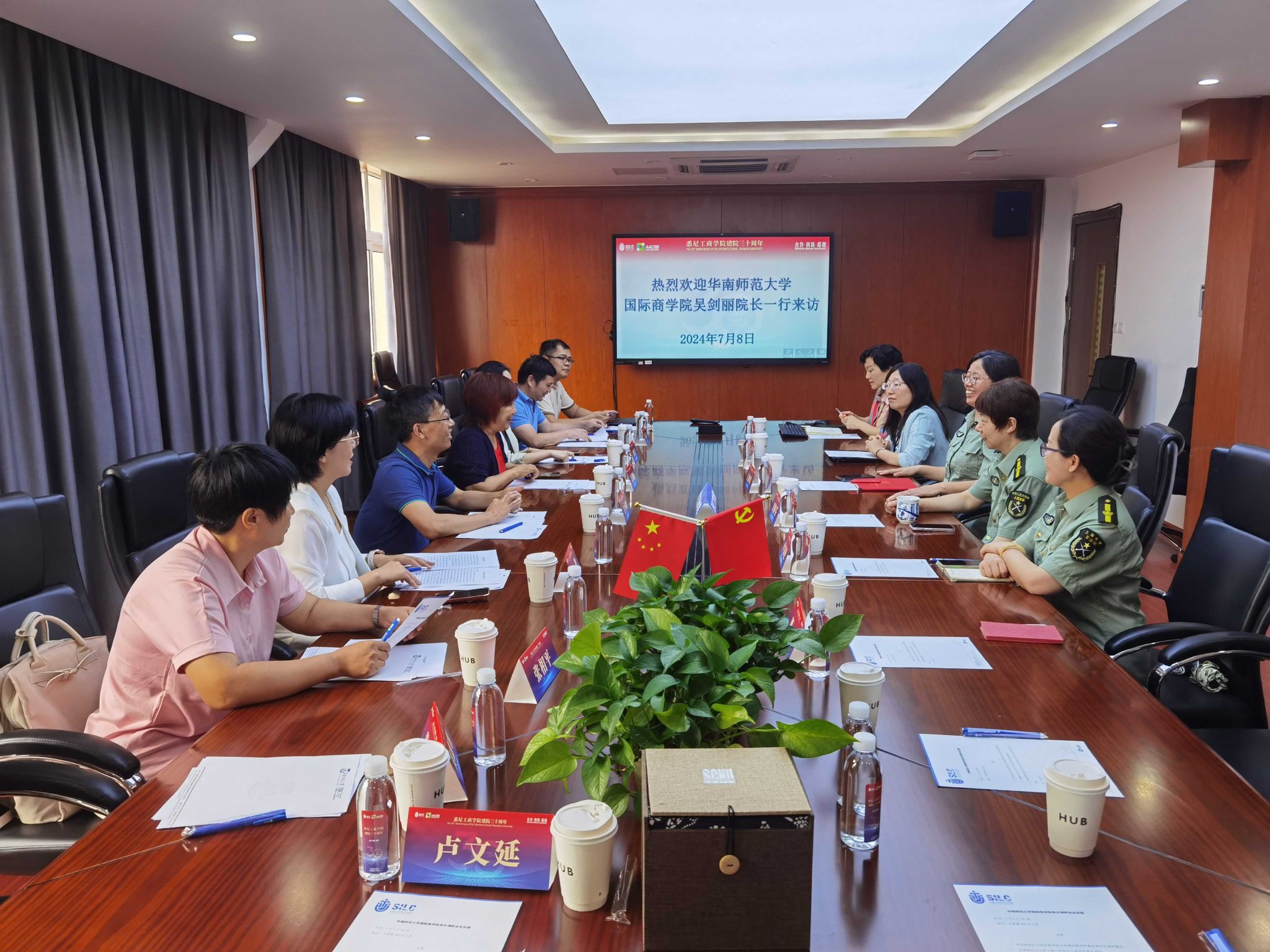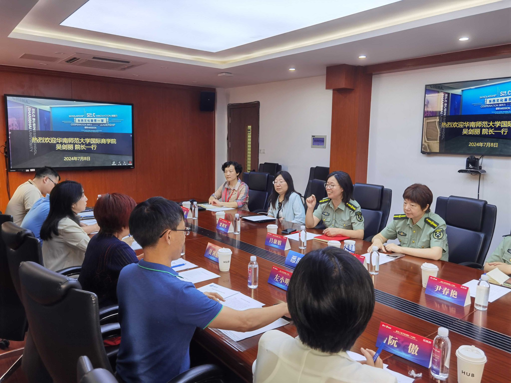 7月9日下午,华南师范大学国际商学院院长吴剑丽院长一行9人来到2138CC太阳集团调研访问,会议在文荟楼409会议室举行,2138CC太阳集团党委书记吕康娟,党委副书记、副院长卫静芬、经金系主任贾立军、创新管理部主任刘蕾、学工部副主任尹春艳等参加会议。