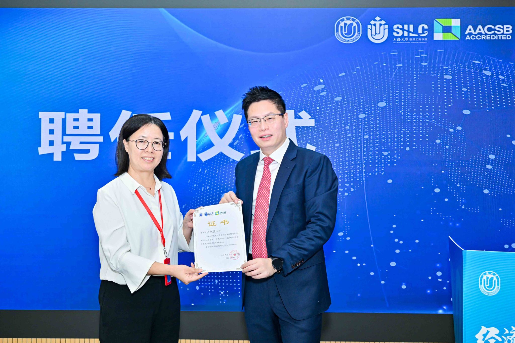 随后,经济学博士、著名财经评论家、复旦大学中国经济研究中心智库研究员马红漫带来题为“大转折时代,战略与策略!”的主旨报告。他以“稳”字为先,探讨了大变局时代的经济挑战,并从基本面分析当前股市,深入剖析当前的经济形势与发展趋势,为与会者提供了宝贵的经济学前沿视角。报告结束后,马红漫博士受聘为学院企业导师,将以其丰富的经验和专业知识,为学院人才培养贡献力量,学院党委书记吕康娟颁发聘书。