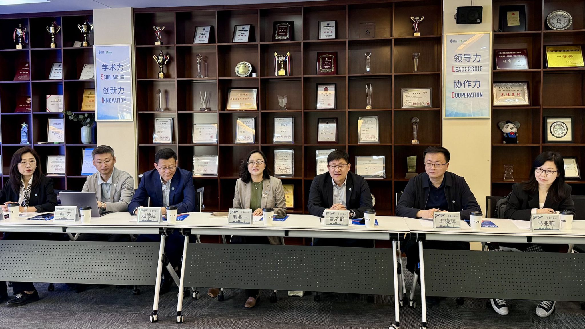 在自由交流环节,三方就研究生层次合作办学的申报工作、计划外硕士研究生的校内管理体系、优质教育资源引入保障机制、外籍教师聘用及管理、AI等新科技融入课程建设、产学研合作等问题进行了深入交流和讨论。之后,与会者分成两组,分别就“中外合作办学国际认证”“学生管理和学生活动”两个议题进行了分组讨论。会后,两校嘉宾还兴致盎然地参观了学院教学楼、院史馆、文体活动中心等教学硬件设施。