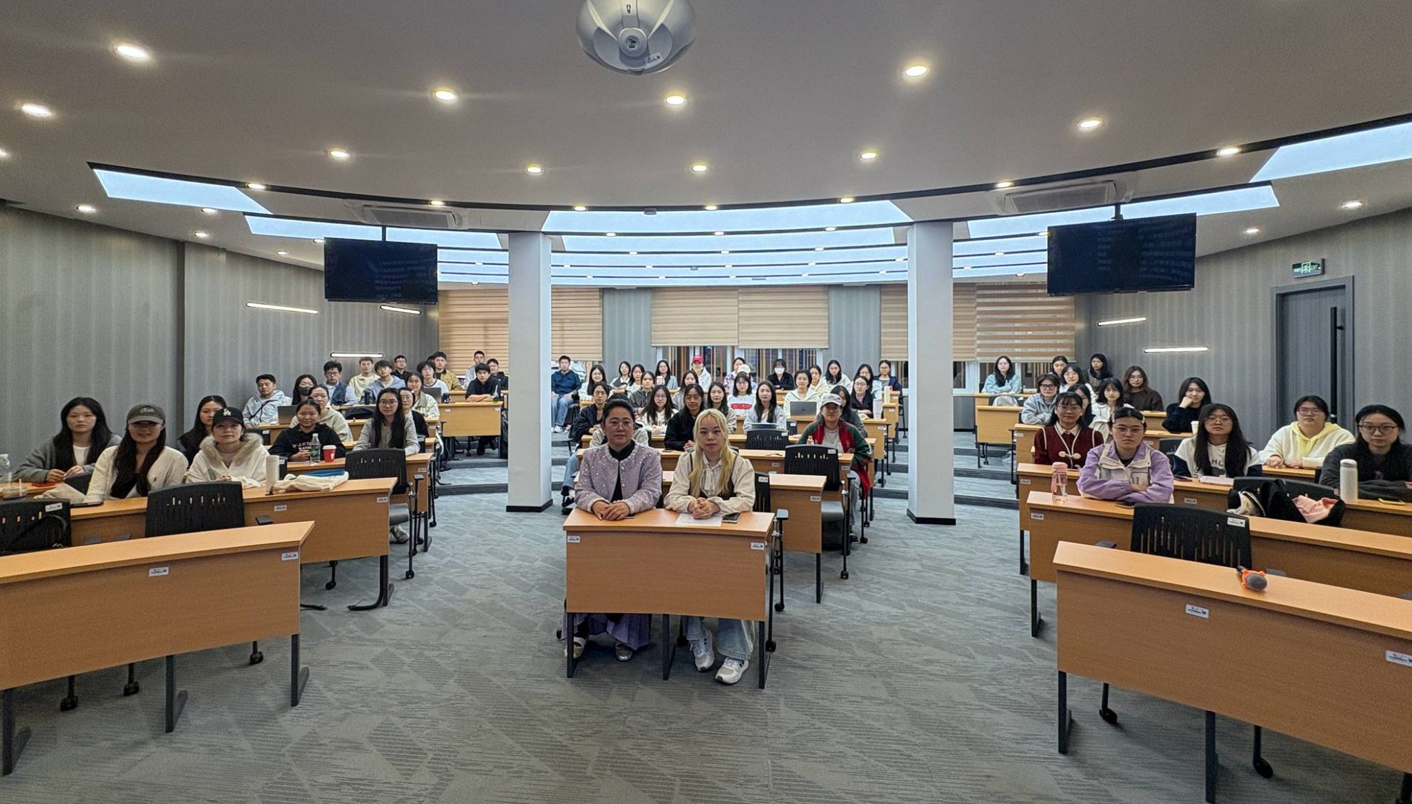 周建兵老师剖析了金融行业现状与发展趋势,系统梳理中国证券业发展历程,深入解读中美贸易战、算力芯片发展及注册制改革带来的市场变革,并展望人工智能对金融行业的赋能前景。他指出,在当前全球科技竞争背景下,资本市场通过注册制改革等机制,已成为支持科技企业融资、推动关键技术突破的重要力量,体现出金融与科技深度融合的新逻辑。他鼓励学生在学术与实践探索中“多尝试”,通过试错精准识别个人特质与行业细分领域的契合点,找到兼具潜力与优势的发展方向。