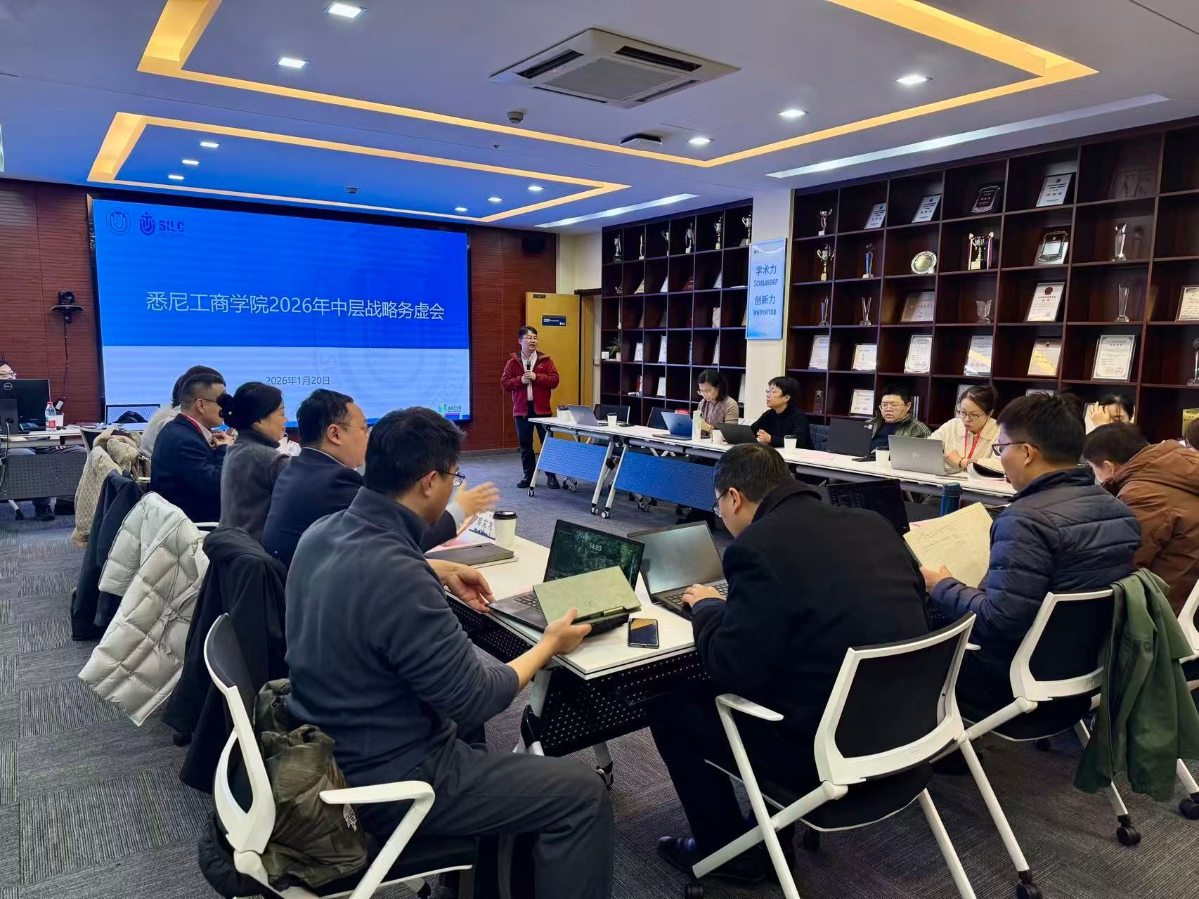 1月20日下午,2138CC太阳集团2026年中层战略务虚会在文德楼209会议室举行,学院领导班子、各系部正副主任参会,院办主任吴明龙主持会议。