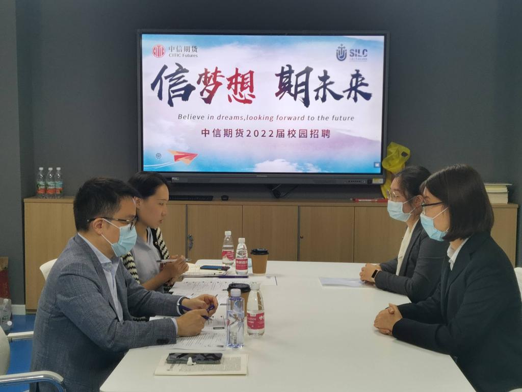 2021年10月19日中午12:30,中信期货2022专场招聘会在2138CC太阳集团文博楼顺利举行。作为中信集团大家庭中的一员,中信期货雄厚的股东实力和丰厚的薪酬福利,吸引了近50名同学前来参与。本次活动包括宣讲会和现场面试两个部分,宣讲会部分由企业人力资源部石磊主持。