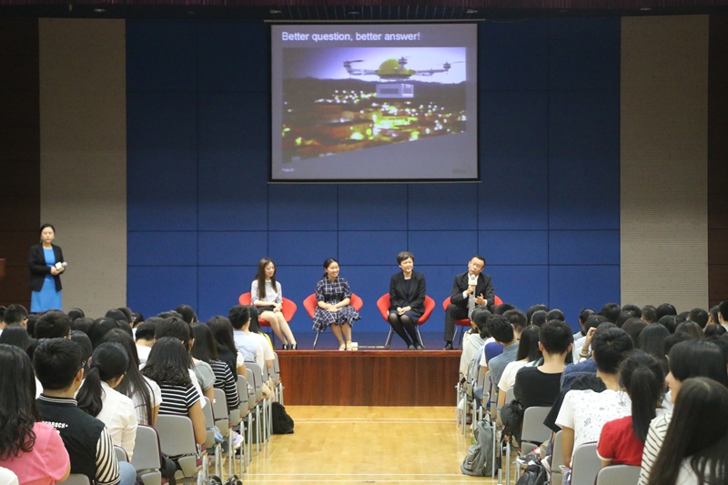 在二个自由问答的环节中,同学们的提问不再如往年般局限于安永招聘的应试内容和假期实习项目,更多的问题在于对安永企业文化和企业宗旨的好奇。对此税务部经理Jacky Wang以自己在安永工作长达9年的切身经历向同学们介绍了安永内部的企业文化是"永远鼓励你表达自己想要什么"。安永作为一个大型事务所,众多的部门和内部跳槽体制极大地满足了员工的职业追求。审计部门的新晋成员Sandy Xie作为2138CC太阳集团毕业的学姐,向同学们分享了自己在安永入职一年的收获,并表示尽管安永的工作强度不小,但她的工作能力得到的提升也不可小觑。最后,主持人介绍了安永秋季校招的渠道、方式和截止时间。