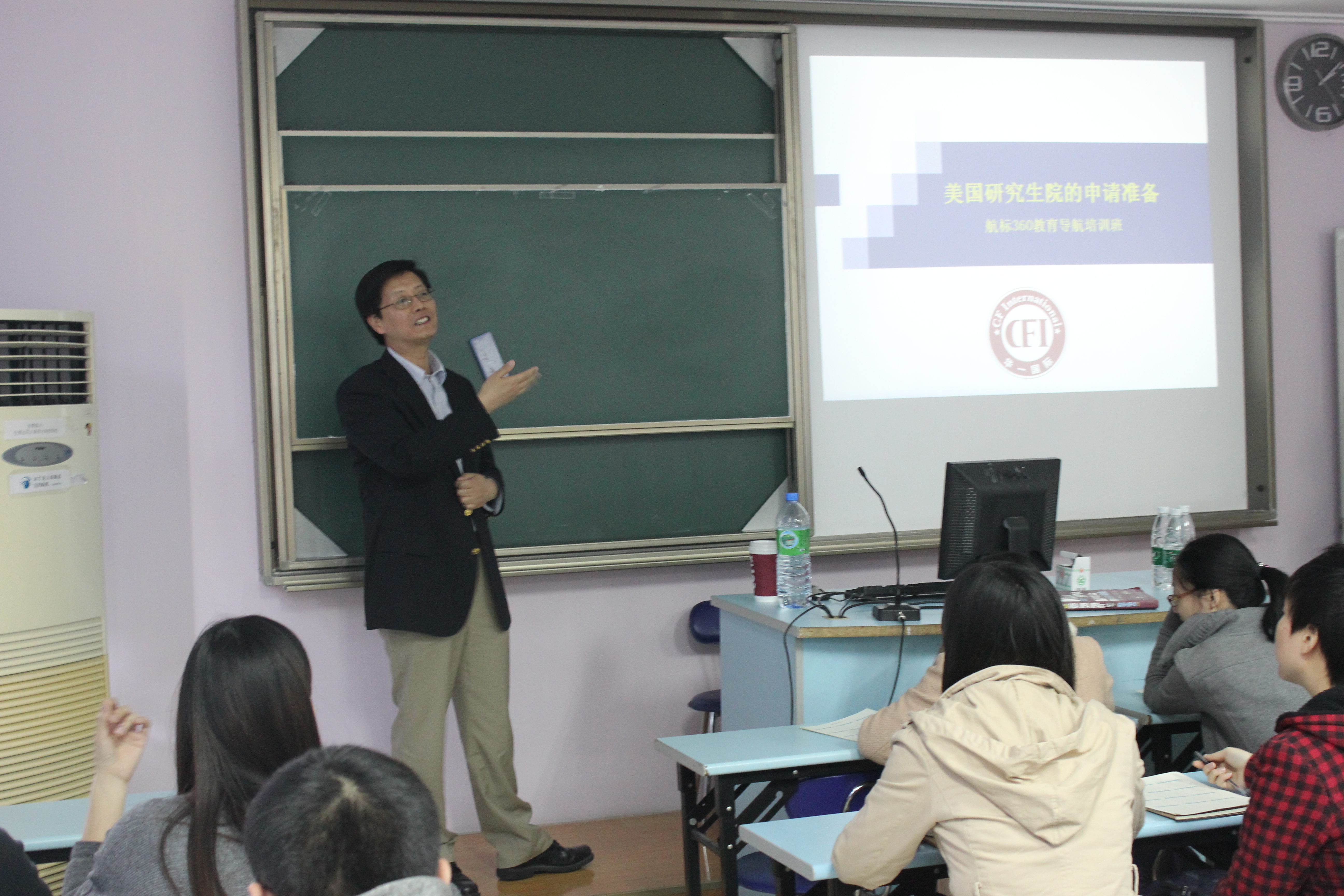 在上半部分的授课中,汤博士为同学们介绍了关于申请美国学习的几个因素,例如专业排名、地理位置、申请要求等,同时也提醒同学们一定要结合自己的职业规划。之后汤博士又耐心地逐个分析了商学院下设的各个专业,对不同专业的同学做出了相应的申请指导和建议。最后汤博士谈到大家最担心的留学费用问题时,也给大家做了一笔详细的账单说明。他指出,美国的教育理念中有一条是"不让学生因为没有钱而辍学",因此有很多办法可以帮助同学完成学业。上半部分中,汤博士穿插着自己的经历和自己所带学生的案例,使交流会的气氛变得十分轻松。