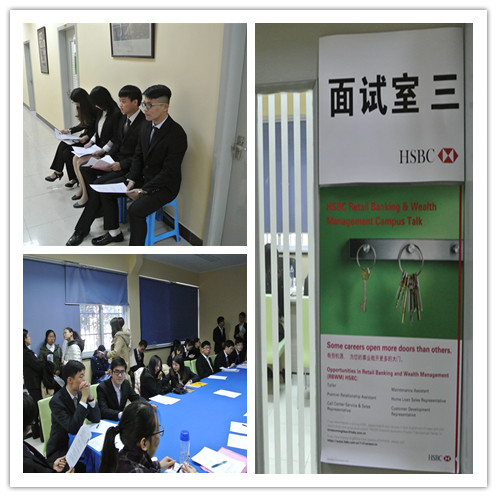 面试当天,上午10点之前,在文博楼103室已经聚集着不少前来面试的同学,大家都身着正装,带着简历和自己准备的材料,在候场室内积极的准备着接下来的面试。10点,群面正式开始。汇丰银行HR部门的两位负责人开始了今天的第一组面试。群面由四位同学同时进行,悉商的同学在整个面试过程当中展现了作为一名悉商学子应有的自信,英语口语能力也得到了充分的发挥,整个上午的面试也有条不紊的进行着。