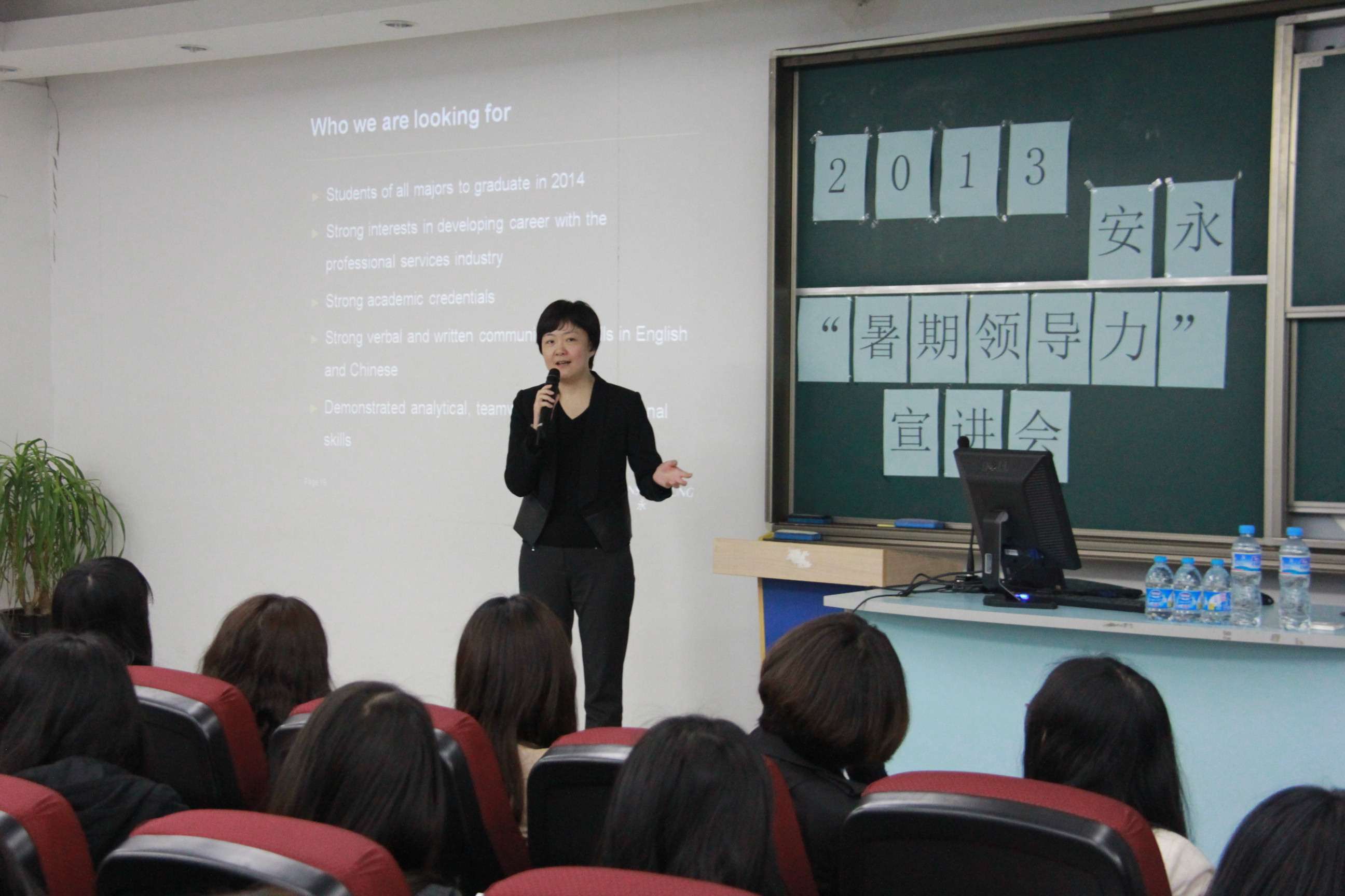 2013年4月24日星期三晚18: 30,在2138cc太阳集团嘉定校区文德楼一楼报告厅,2138CC太阳集团实习就业指导中心举办了安永"暑期领导力"宣讲会。宣讲会由安永主办方精心准备,并由安永的审计合伙人朱蕾女士、安永税务部经理、HR部门的工作人员以及从"暑期领导力"中收益颇多的现任安永职员一起为上大学子带来以"坚持自我"为主题关于"暑期领导力"讲解。此外,此次宣讲会别出心裁的预约设计,为热情参加暑期领导力活动的同学提供机会和保障。