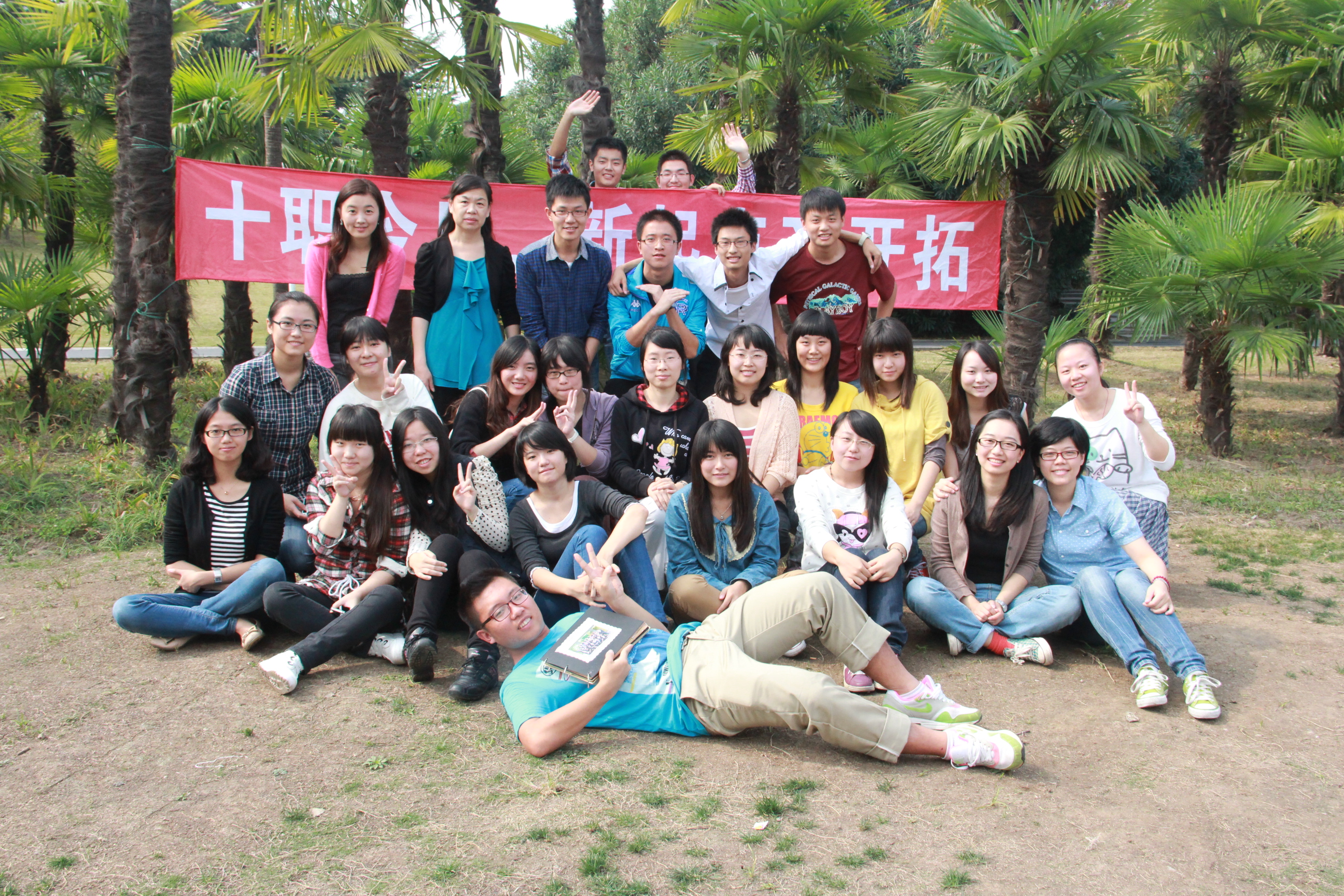上午十点,职拓成员乘车前往大宁灵石公园开展换届活动。作为主持人的仲央同学开场便带领成员们回顾过去一年的工作,同学们用自己的数码设备观看职拓的换届ppt,经此新成员们也加深了对职拓的认识,相信对未来自己在职拓应该做的工作也有了定位;现场的两位大四成员许佳韡学姐和吴秀梅学姐作为职拓第九届优秀成员代表接受了两位老师为她们颁发的奖状和礼品,作为第九届职拓主任的许佳韡学姐也发表了自己的感想,对新成员们寄予了极高的期望,前辈的经验也是自己需要听取和总结的,希望能对新成员们有所启发;此外,整个活动的高潮便是两届主任的交接仪式了。新一届主任夏文君同学发表了自己的感想,并接下许佳韡交给她的职拓纪念册和钥匙,这也代表这次的交接仪式圆满完成了;最后一个环节,同学们分享了自己或久远或最近刚发生的趣事,新老成员们在草地上合影留念,现场氛围其乐融融。