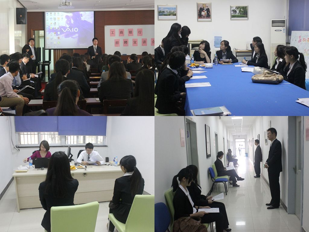 中国工商银行的主讲人主要介绍了一下工商银行目前的主要业务、招聘员工的基本素质及薪资福利、工行的企业文化等同学们热切关注的信息。在历时一个小时的宣讲会结束之后,100多名大四同学根据之前公布的面试时间表,在指定的时间段内来到文博楼一楼相应的教室,候场、面试。