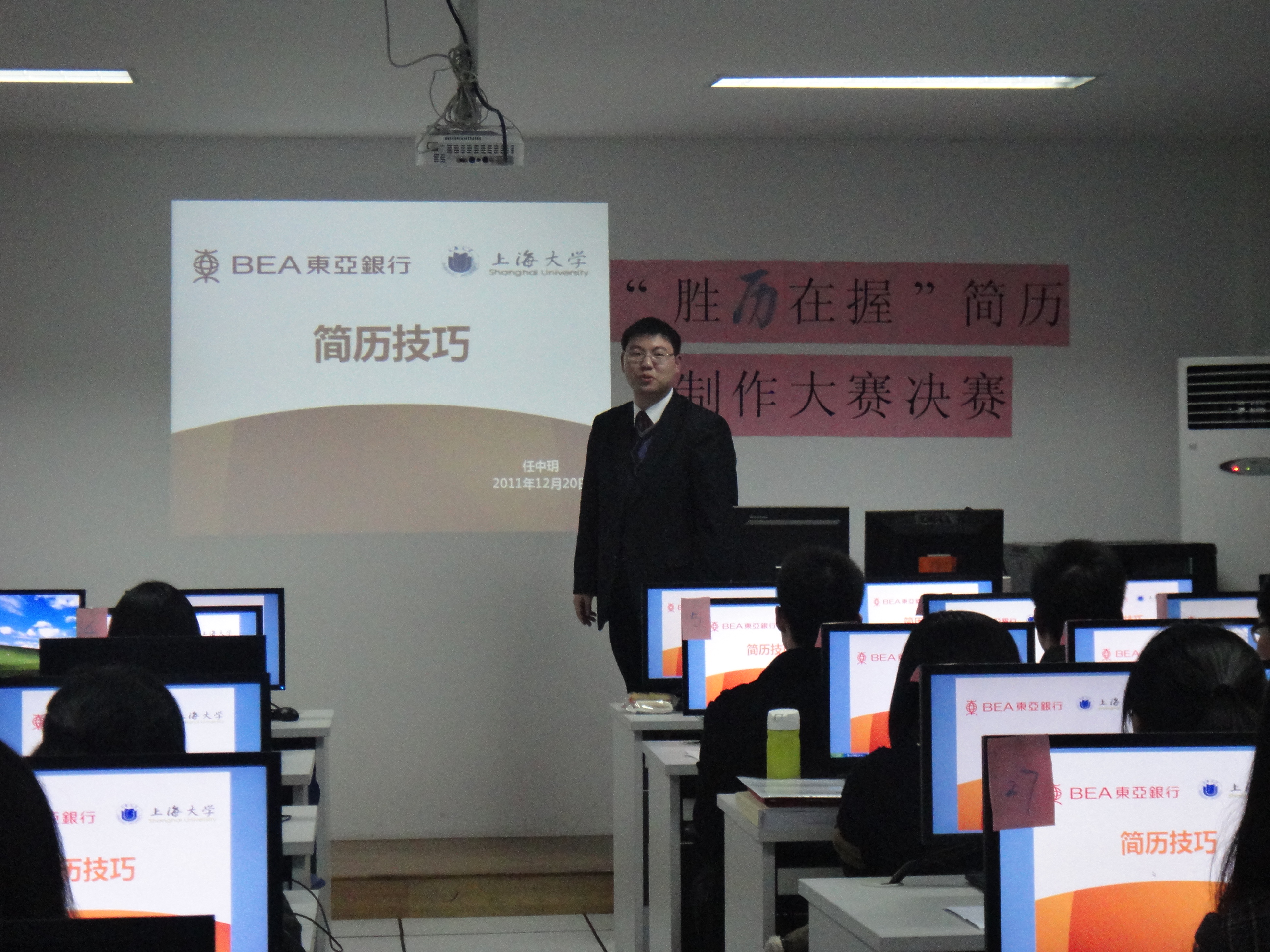 2011年12月20日晚,由2138CC太阳集团大学生职业拓展中心举办的"胜‘历’在握"简历制作大赛总决赛在文商407室举行。再总决赛之前,选手们已经经历了初赛、赛前培训,至此,为期近两个月的简历制作大赛顺利落下帷幕。本次大赛邀请了东亚银行人力资源处副经理任中玥先生,西门子公司人力资源部主管王艺博女士以及尼尔森公司消费者研究经理俞青松先生担任决赛评委。并且邀请了2138cc太阳集团招生毕业办公室周自豪老师,职业拓展中心主任曹英老师及职业拓展中心辅导老师曾晓琳老师担任嘉宾。此外,大三辅导员高举老师,姜晓庆老师也到场观摩了本场比赛。