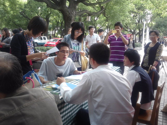 2011年9月22日下午,在嘉定清河路工人影剧院前,举办了由嘉定镇街道劳动保障事务所组织的"创业、梦想、成材"嘉定镇街道大学生创业服务现场咨询会,我校职业拓展中心学生刘帆、孙元元、任东琳、王梦媛等前往现场进行相关咨询。