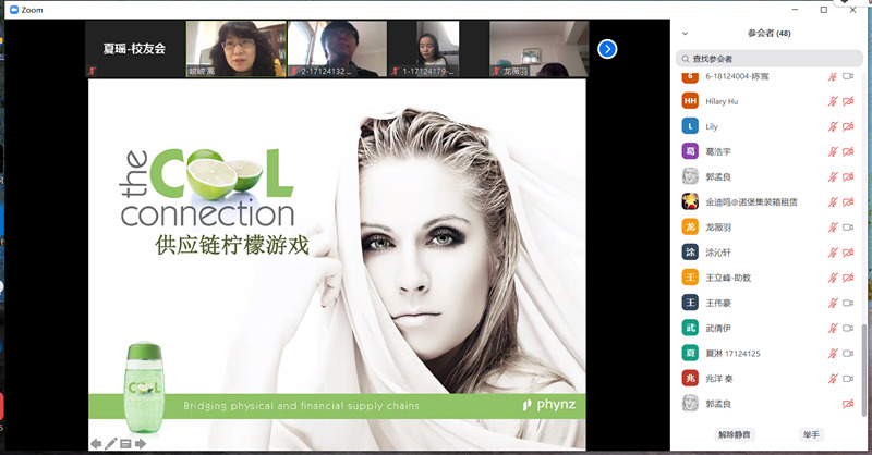 3月12日、13日,校友分会正式开启重返课堂项目的试运行。正值疫情期间,1994级夏莺、2001级金迪鸣、2002级洪凡和2008级郭孟良4位校友作为第一批项目体验者,以网络学习的方式参与到学院创业指导中心主任帅萍老师的《创新与小企业管理》与工商管理系高峻峻教授的《供应链与物流决策模拟》课堂当中,收获颇丰。