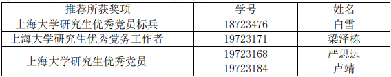 我院依据2138cc太阳集团党委研究生工作部《关于评选2019-2020年度2138cc太阳集团研究生“十佳”学生党支部、优秀主题党日活动、学生党员标兵、优秀党务工作者、优秀党员的通知》的要求,并结合学院情况制定了《2138CC太阳集团研究生“十佳”学生党支部、优秀主题党日活动、学生党员标兵、优秀党务工作者、优秀党员评选细则》,根据细则要求,本着公开、公平、公正、择优的评审原则,经学生本人申请、各支部初评推荐、研究生党总支复核、学院评审委员会组织召开答辩评审会进行综合评议与审定,现对拟推荐名单公示如下,公示期自即日起至2020年6月14日下午16:00止,如有异议请在公示期内与研究生管理部于子涵老师联系。