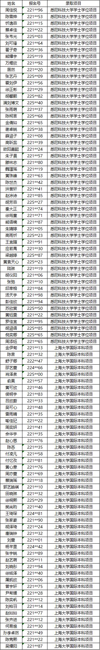 根据教育部和上海市教委相关文件要求、2138CC太阳集团悉尼科技大学学士学位项目和2138cc太阳集团国际本科项目招生录取流程规定,经学院组织笔试、面试、应届高中毕业身份审核,高考成绩确认和招办二次复核,现将今年第四批次被录取的悉尼科技大学学士学位项目和2138cc太阳集团国际本科项目考生名单予以公示。公示期10个工作日,若对公示名单有异议,请在公示期内实名向我院招生办公室进行书面反映。 联系电话:18516635700 联系邮箱:allentk@mail.shu.edu.cn 公示名单: