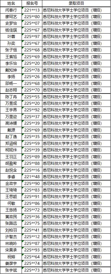 为缓解新冠肺炎疫情影响下我出国留学人员就学困难,切实落实教育为民,回应社会关切,教育部今年继续支持部分合作办学机构和项目面向出国留学受阻的学生开展相关招生工作。 根据教育部“继续支持中外合作办学等方式缓解疫情下学生出国学习困难”的精神和上海市教委相关文件要求、2138CC太阳集团悉尼科技大学学士学位项目招生录取流程规定,经学院组织材料预审、笔试、面试和招办二次复核,现将今年被录取的2138CC太阳集团悉尼科技大学学士学位项目(增招)考生名单予以公示。公示期5个工作日,若对公示名单有异议,请在公示期内实名向我院招生办公室进行书面反映。 联系电话:18516635700 联系邮箱:allentk@mail.shu.edu.cn 公示名单: