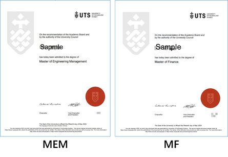 五、 授予证书 悉尼科技大学学位证书 教育部留学服务中心《国外学历学位认证书》 2138CC太阳集团硕士研究生学业证明 六、 入学须知 1.招生考试形式:笔试+面试 2.学制:1.5年 3.入学时间:每年9月 4.授课时间:周六、周日(法定节假日除外) 5.报名费:人民币2000元(除因不可抗力学院取消考试外,报名费用概不退还) 6.学费:工程管理硕士学费总计人民币20.8万元,金融硕士学费总计人民币21.8万元。学费一次性缴纳,若超过缴费截止日期而未缴纳,原则上视为考生本人放弃录取。学院组织的海外高校游学、赴澳毕业典礼等活动自愿参加,费用自理。 七、 报名方式 1.申请人资格 申请人拥护中国共产党的领导,遵纪守法,政审合格,且需要满足以下学术背景要求之一: (1)拥有本科毕业证及学位证; (2)拥有大专或本科单证的申请人,申请MEM专业须具有至少4年(含)以上相关行业工作经验,申请MF专业须具有至少2年(含)以上相关行业工作经验。提交个人简历、商科专业相关课程结业证书等相关材料后,学院对申请人做行业背景评估与审核。 2.报名材料准备 (1)身份证正反面扫描件; (2)毕业证、学位证扫描件。如为2025届应届本科毕业生,需提供在读证明扫描件(最晚在2025年7月10日前提交本科双证材料); (3)学信网学历查询报告或教育部留学服务中心学历认证书扫描件。 3.报名时间 即日起至2024年11月30日。 4.申请流程 官网注册——信息填写、资料上传——提交报名——资格审核——报名费缴纳——入学考核——通知拟录取——申请材料提交审核——悉尼科技大学材料审核——发放录取通知、学费缴纳 (1) 网上报名 登录学院官网(http:/),点击页面底端注册登录“研究生招生报名系统”,或直接登录网址http://47.99.79.115/Home/Login,在中外合作硕士项目模块填写报名申请,并上传报名材料。 注:由于报名学年更新,于2024年10月8日之前在系统填写报名申请的同学,需重新填报信息 网上报名填写报名申请,并上传报名材料后,考生可通过报考系统或接收短信查询审核结果。 (2)考核时间与方式 入学考核将采用笔试、面试相结合的方式,总成绩为笔试成绩*50%+面试成绩*50%