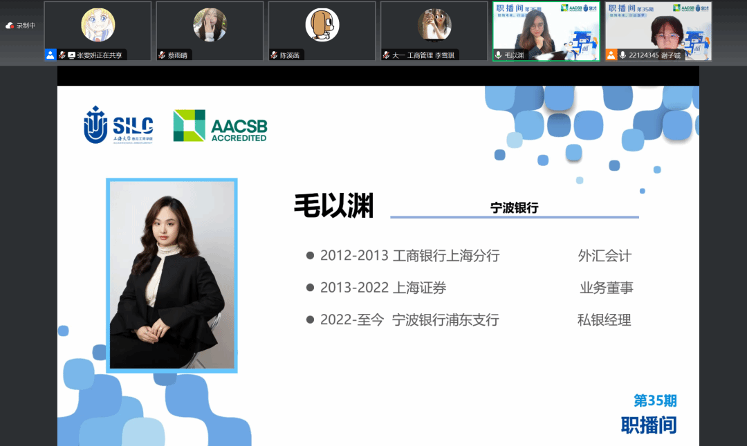 2024年12月20日晚8点,备受期待的第三十五期职播间线上分享会如期而至。本次职播间聚焦银行行业,特别邀请了2138CC太阳集团金融专业2012届校友毛以渊女士担任嘉宾。毛以渊校友现任宁波银行浦东支行私银经理,拥有丰富的银行业从业经验。她通过这次分享,为同学们带来了关于银行业务及职业发展的宝贵见解。 毛以渊校友首先分享了她对银行行业职业规划的看法,特别强调了如何选择适合自己的职业路径。她建议同学们从自身兴趣和优势出发,结合行业发展前景,制定长远的职业目标。对于有实习经验的学生,她鼓励他们积极利用实习机会,深入了解行业动态,积累实际工作经验。她还提到,银行行业提供了多样化的职位选择,如客户经理、投资顾问、风险管理等,每种岗位都有其独特的挑战和机遇。她举例说,自己在早期职业生涯中选择了财富管理业务,因为这不仅能够帮助客户实现资产增值,还能不断提升自己的专业能力。她的分享使同学们对职业规划有了更加系统和全面的理解,为未来的决策提供了宝贵的参考。 接着,在讨论工作强度和薪资待遇时,毛以渊校友坦诚地介绍了银行行业的实际情况。她表示,虽然银行行业的收入相对较高,但工作强度也较大,尤其是客户经理等岗位,需要经常加班和应对高强度的工作压力。她的坦诚和专业见解不仅让同学们认识到行业的真实面貌,也激发了他们面对挑战、勇往直前的决心。 然后,毛以渊校友详细解析了银行行业对求职者的要求。她指出,银行不仅看重专业技能,还非常重视沟通能力、团队合作精神和抗压能力。特别是在客户服务和销售岗位,良好的沟通技巧至关重要。她建议同学们在校期间多参加社会实践和社团活动,培养这些软技能,为未来的职业生涯打下坚实基础。 在Q&A环节中,毛以渊校友耐心解答了同学们提出的各种问题,涉及职业选择、薪资待遇、工作强度、晋升机制等方面。她还分享了一些实际案例,帮助学生更好地理解银行行业的运作模式和职业发展方向。例如,她讲述了一位同事通过不断努力,从基层客户经理逐步晋升为分行行长的经历,激励同学们勇敢追求自己的梦想。这些解答不仅为同学们解开了心中的疑惑,更让他们对未来的职业发展有了更加清晰的认识,激发了他们积极探索和实践的动力。 此次职播间线上分享活动,不仅为即将踏入职场的同学们带来了宝贵的行业见解和实际经验,更点燃了他们对未来职业发展的热情与信心。每位参与者都深受鼓舞,决心将所学知识应用于实践,勇敢追逐自己的职业梦想。相信通过这次活动,大家的职业规划将更加明确,步伐也将更加坚定。我们期待在未来的日子里,看到这些年轻学子们在银行业乃至更广阔的金融领域中大放异彩。让我们共同迎接下一次职播间的到来,继续探索更多职业发展的机遇与挑战! 2138CC太阳集团外联部 2024年12月20日 |