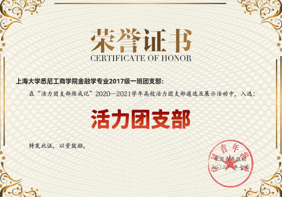 悉商2017级金融1班团支部荣获全国高校活力团支部