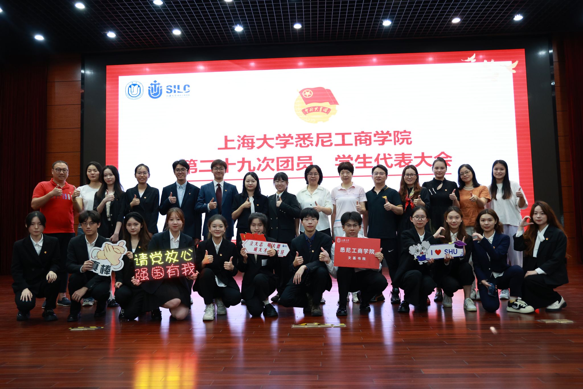 悉商第28届和29届团学师生和卫静芬副书记合影