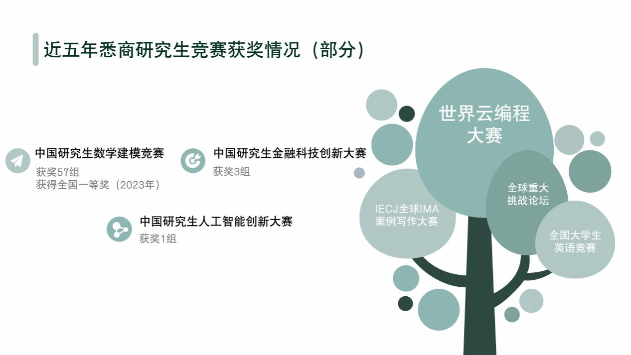 学院在科研竞赛方面取得丰硕成果。近三年,研究生发表SCI/SSCI/EI/CSSCI检索期刊论文81篇,包括JCR一区论文15篇;3人发表专利或软件著作,21人参编著作, 21篇案例入选四大案例库,1篇获得全国百优案例。学院积极推动研究生参与各级学术竞赛、创新实践竞赛,鼓励研究生学术创新。